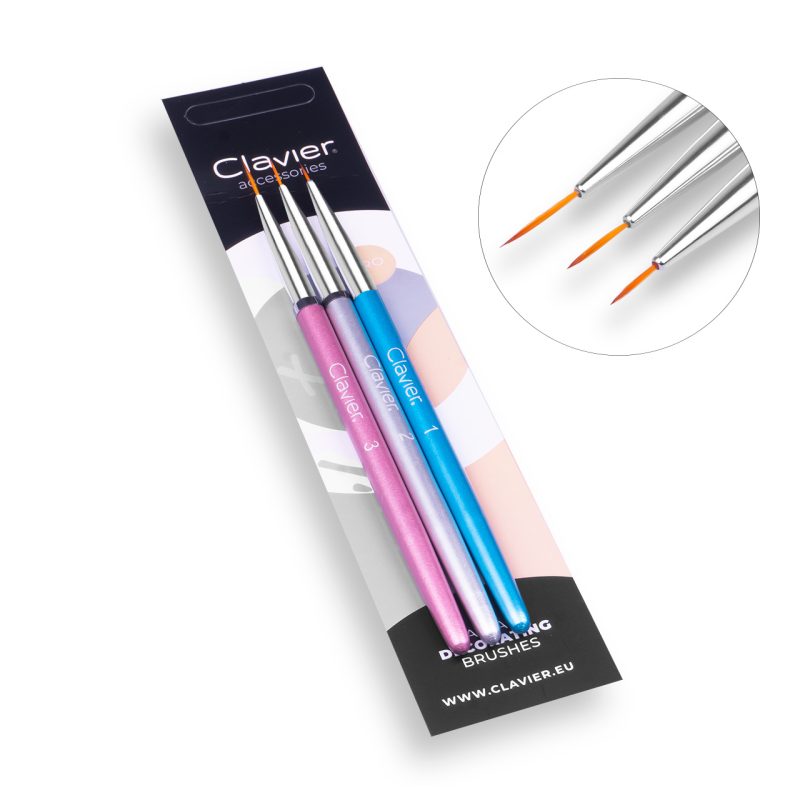 Zestaw pędzelków do zdobień, to precyzyjny, designerski zestaw pędzelków kreatywnej stylistki do nail artu w pastelowych kolorach o długości 7mm, 9mm, 12mm. Posiadają wygodne i niezbędne zatyczki, dzięki którym Twoje pędzelki się nie zniszczą. Świetnie leżą w dłoni, umożliwiając bezproblemową, precyzyjną pracę. Posiadają najwyższej jakości włosie syntetyczne.
